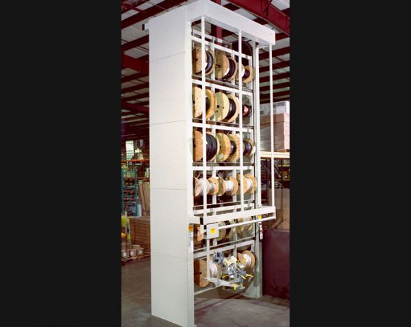 - Improved efficiency and throughput from employees who can stay at their workstation but manage multiple product lines. Your team members will appreciate how much easier cable spool storage makes their work, and vertical spool storage carousels will allow them to work more efficiently and productively on a day-to-day basis.