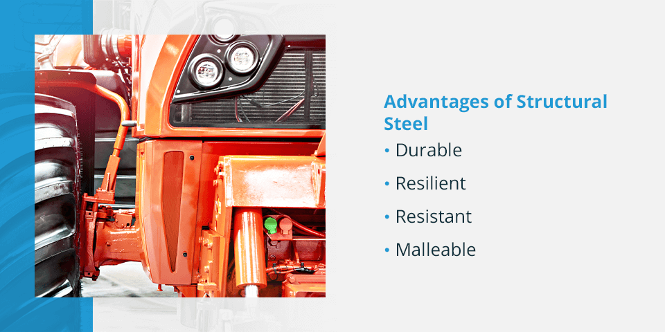 Most heavy equipment manufacturers still rely on steel for the primary construction of their machinery. Structural steel shells meet with solid steel frames on tractors, combines, tillers and many other attachments.