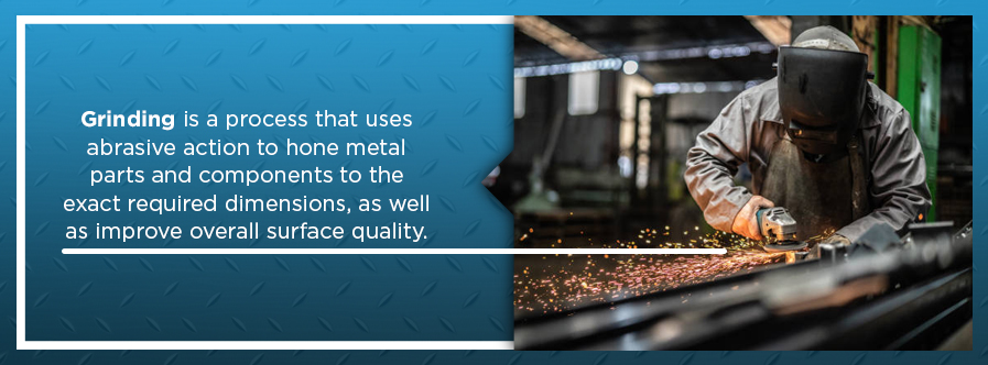 Metal fabricators primarily use grinding for shaving away unwanted pieces of material to make the resulting product fit exactly with the needed dimensions. Metal fabricators typically employ grinding to perform this function instead of other types of cutting because grinding wheels can remove the tiniest metal shavings. Typically, other cutting tools can only remove metal in larger chunks.