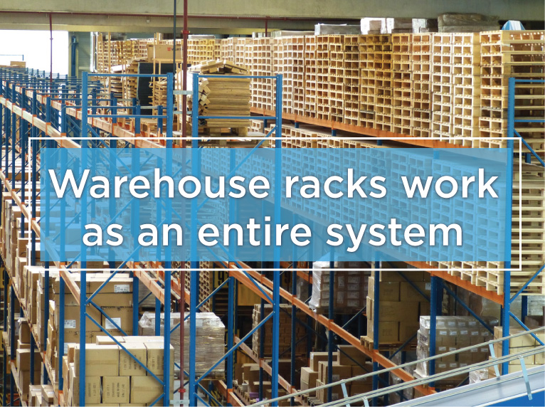 It’s important to view warehouse storage racks as an entire system. According to the industry authority, Rack Manufacturers Institute (RMI), rack systems are high-performance structures that are highly engineered to support product loads more than 10 times the actual weight of the rack structure itself. The RMI demands each system component be designed, manufactured and tested to ensure endurance and strength through its intended lifespan.